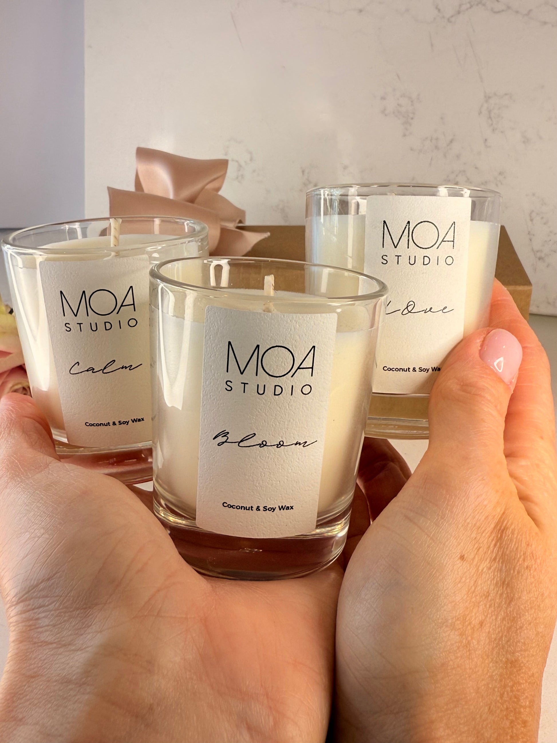 A thoughtfully curated collection of three beautiful candles: Love, Bloom & Calm.